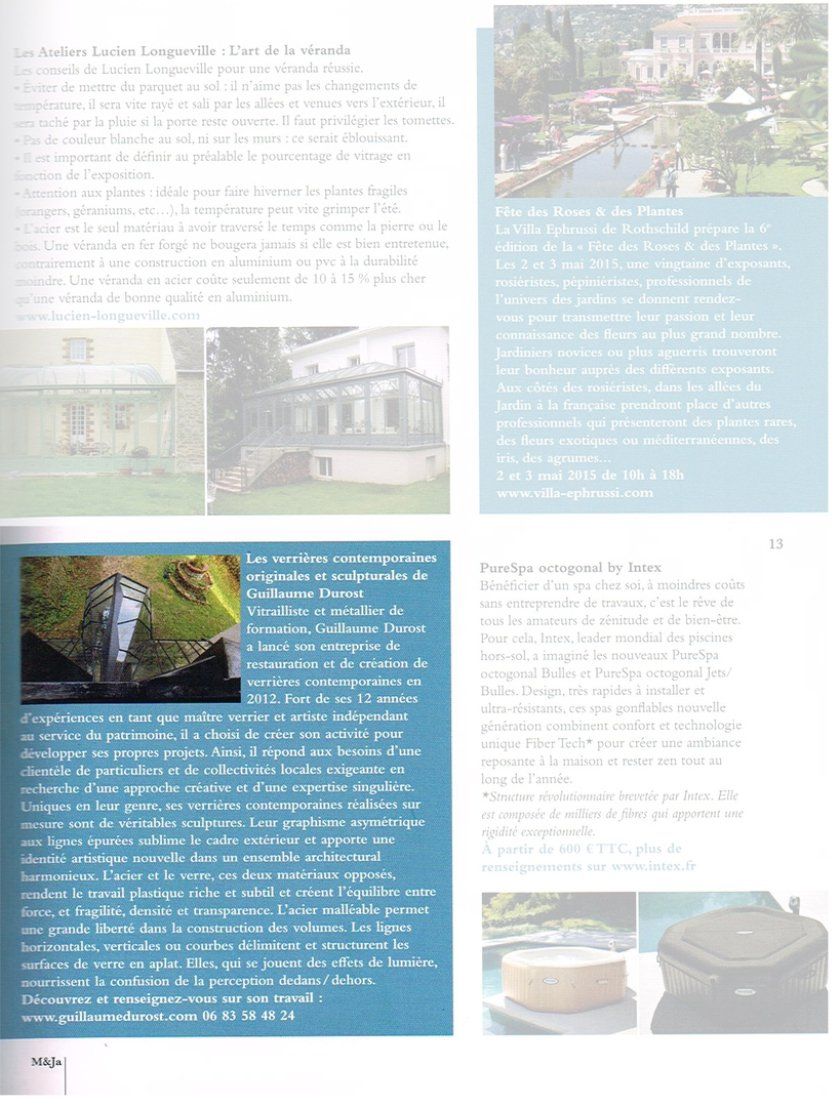 >1999, première entreprise de réalisations artistiques in situ à destination de particuliers et de collectivités (vitraux et sculpture du métal)